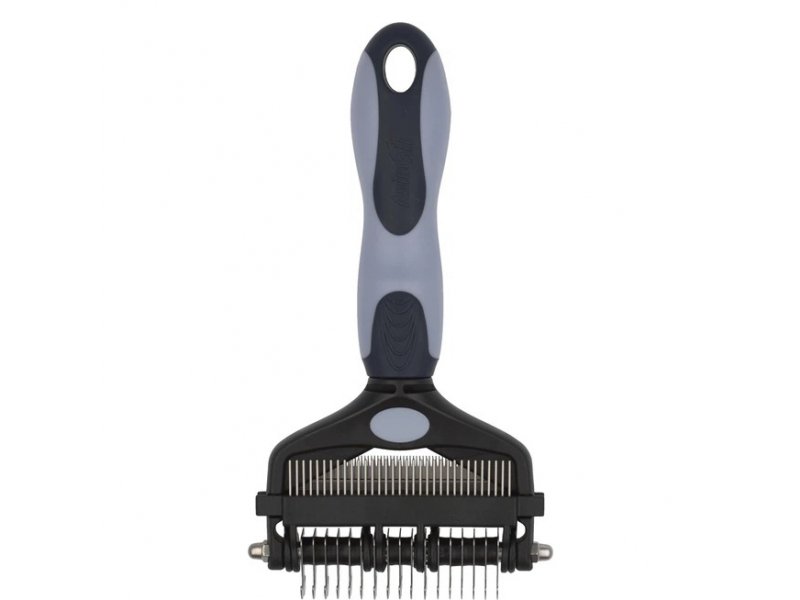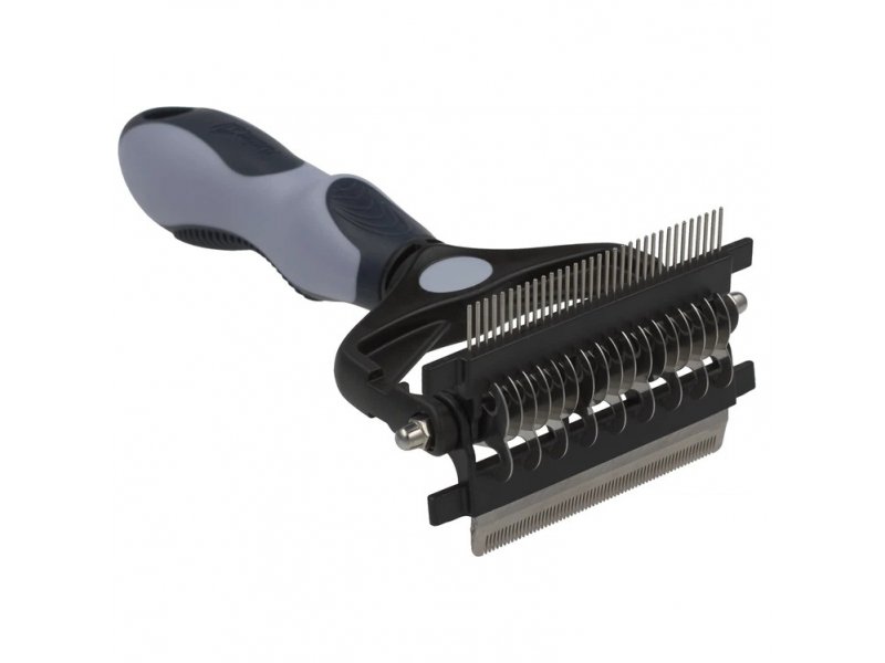 Колтунорез-дешеддер-грабли 3-в-1 AnimAll для длинношерстных пород собак — универсальный инструмент, сочетающий функции колтунореза, дешеддера и граблей. Он предназначен для эффективного и комфортного вычесывания шерсти, особенно у собак с густым подшерстком, жесткой или длинной шерстью. Регулярное использование помогает поддерживать опрятный вид, предотвращать образование колтунов, стимулировать кровообращение и облегчать период линьки.