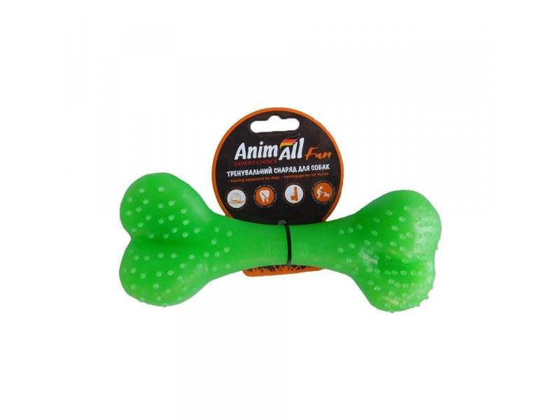 AnimAll Fun предлагает замечательный тренировочный снаряд для собак в форме косточки — яркую и полезную игрушку для активных игр и здоровья зубов.