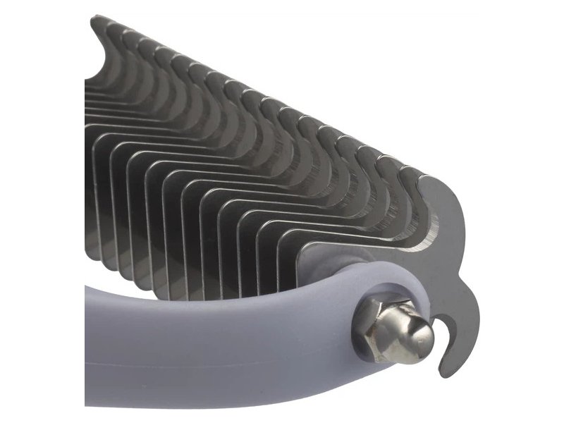 Постоянный уход не только поддерживает аккуратный вид, но и предотвращает образование колтунов, стимулирует кровообращение, облегчает период линьки и позволяет своевременно заметить изменения в состоянии кожи или шерсти любимца. Двухсторонний колтунорез AnimAll создан, чтобы сделать процесс вычесывания шерсти максимально эффективным и комфортным для собак и их владельцев. Инструмент легко удаляет подшерсток, аккуратно распутывает даже сложные колтуны и не травмирует нежную кожу животного. Сочетание профессионального качества, безопасности и удобства делает этот инструмент надежным помощником в ежедневном груминге.