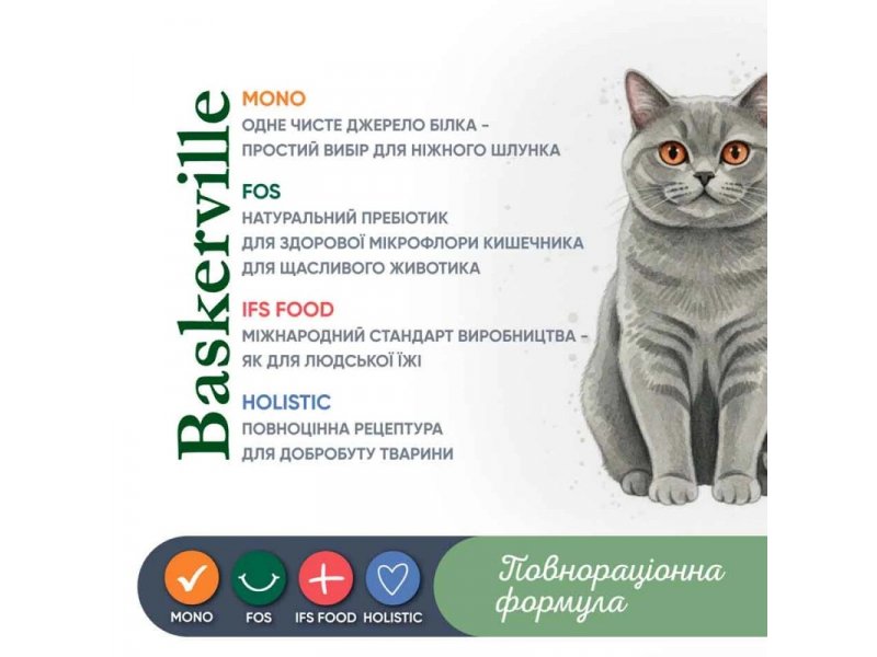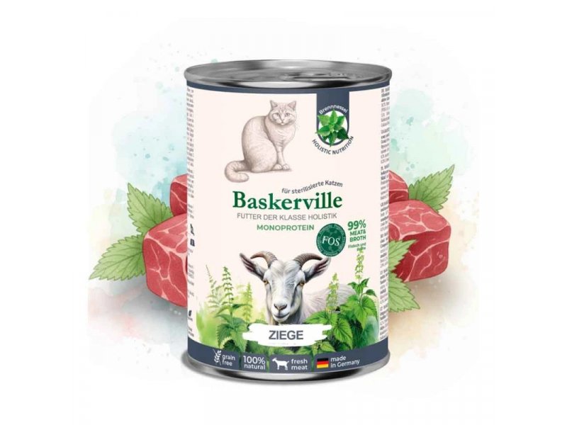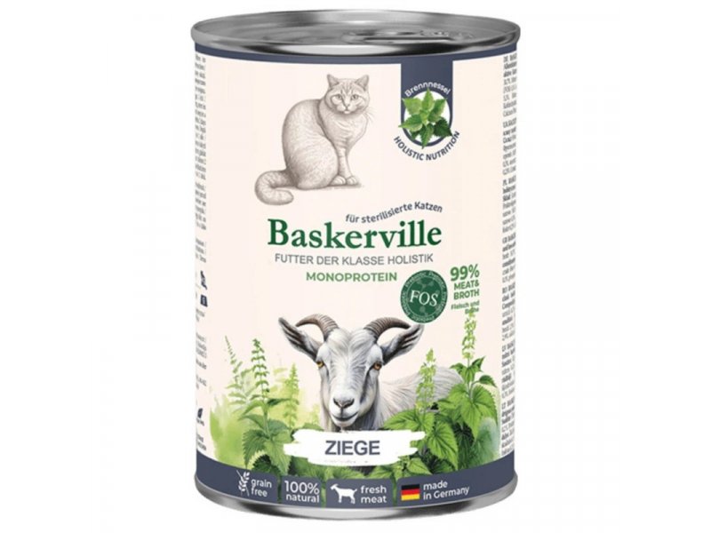 Baskerville Holistic Sterilised - идеальный холистик: влажный корм с козьим мясом для стерилизованных и малоподвижных кошек Baskerville.