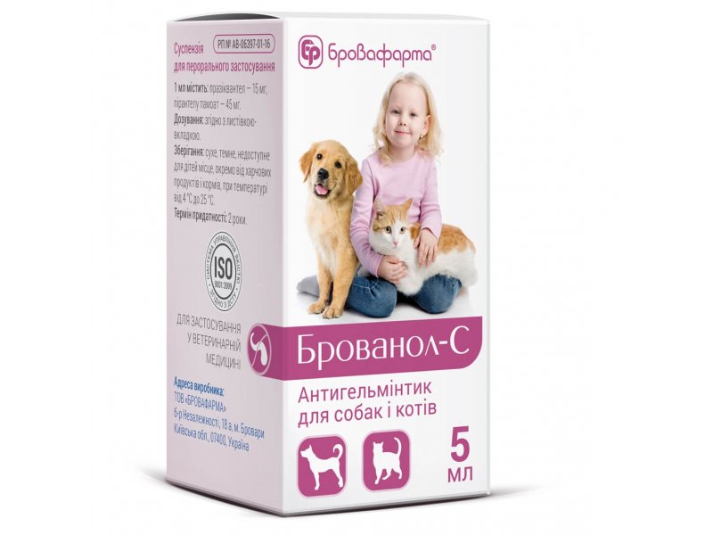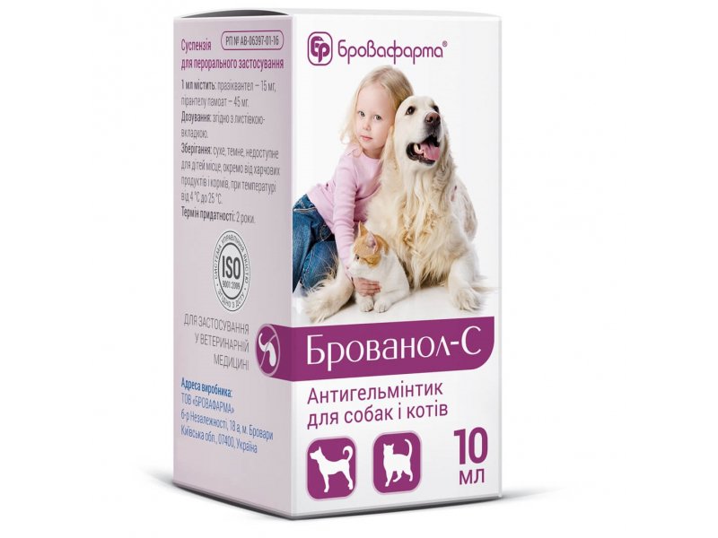 Бровафарма Брованол-С антигельминтный раствор светло-желтого цвета.