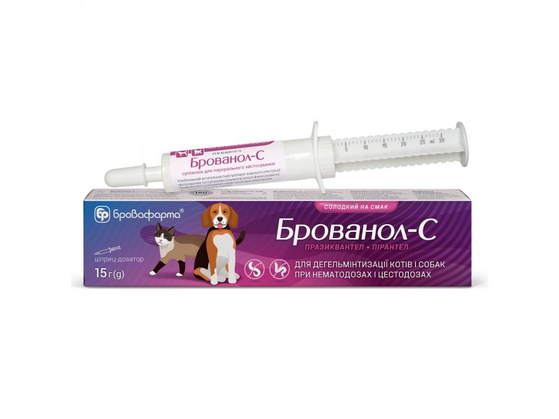 Бровафарма Брованол-С предназначен для профилактики и лечения собак и кошек от нематодозов (токсокарозы, токсаскародизы, унцинариозы, трихоцефалиозы, анхилостомозы), цестодозов (тениидозы, дипилидиозы, эхинококкозы, дифилоботриозы, мезоцестоидозы) и смешанных нематодозно-цестодозных инвазий.