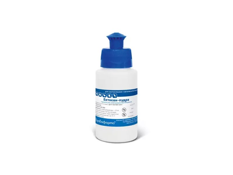 Бровафарма Эктосан пудру назначают для профилактики и лечения собак, кошек, спортивных лошадей и декоративной птицы при поражении блохами, вшами, волосоедами, паразитиформными клещами, а также для защиты животных в теплое время года от нападения двукрылых кровососущих насекомых.