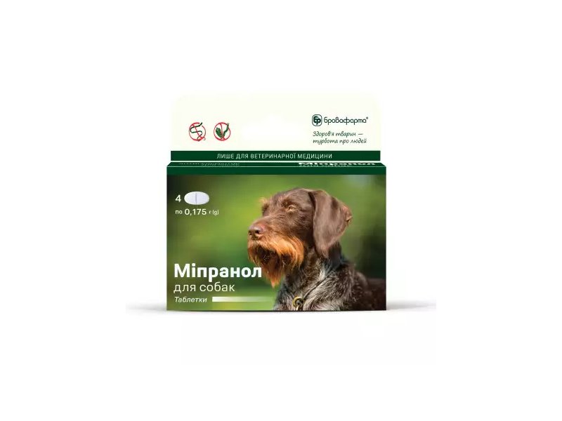 Бровафарма Мипранол испльзуют для профилактики и лечение собак при инвазиях, вызванных цестодами — Dipylidium caninum, Taenia spp., Echinococcus spp., Mesocestoides spp., нематодами — Ancylostoma caninum, Toxocara canis, Toxascaris leonina, Trichuris vulpis, Dirofilaria immitis (профилактика заболевания), и комбинированных нематодо-цестодозных инвазиях, профилактика дирофиляриоза сердца (Dirofilaria immitis) при одновременном применении препарата от цестод.