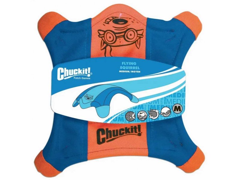 Chuckit! Flying Squirrel - Летающая белка-фрисби, созданная чтобы держать вашу собаку в погоне! Игрушка для собаки в виде белки-летяги вызовет интерактивное веселье между вами и вашей собакой. Просто бросок заставляет белку-летягу лететь, а вашу собаку броситься в погоню.Боковые стороны белки дополнительно укреплены, чтобы её можно было легко подобрать, а лапы светятся в темноте, чтобы игру можно было продолжать и в темное время суток.