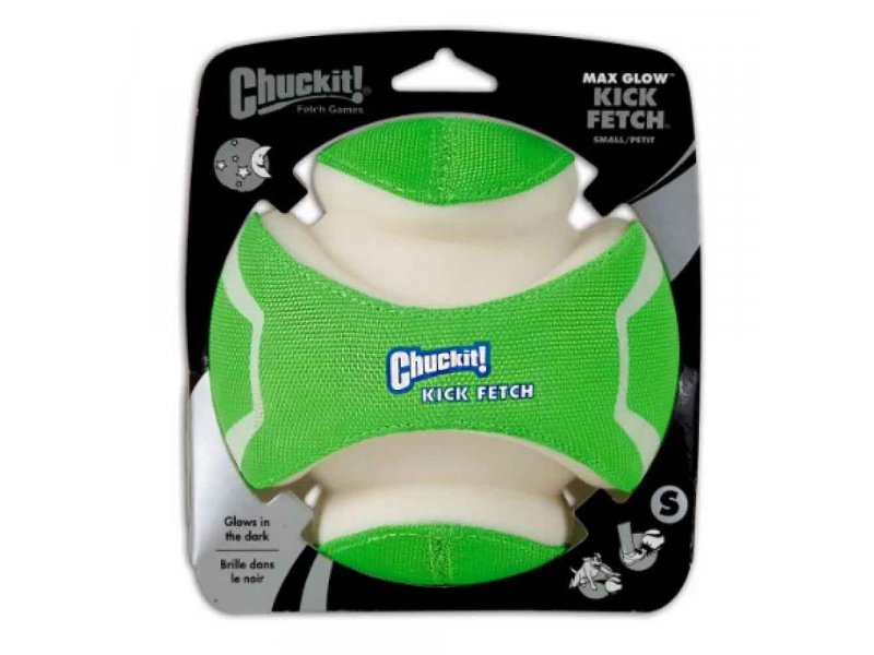 CHUCKIT! KICK FETCH MAX GLOW - это большой мяч, светящийся в темноте, не требующий батареек. Чтобы зарядить его, нужно подержать на ярком свете 5-10 минут, последующие 20-30 минут мяч будет светиться сам. Имеет уникальную дизайнерскую форму, позволяющую собаке удобно брать ее к пасти.