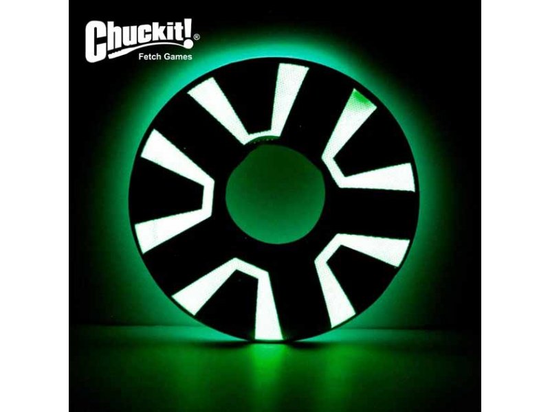 Игрушка CHUCKIT! ZIPFLIGHT MAX GLOW MED игрушка-диск для собак средних размеров, изготовленная из высококачественного фотолюминисцентного материала. Диск светится в темноте и не требует батареек. Чтобы зарядить его, достаточно подержать на ярком свете 5-10 минут – и следующие 20-30 минут мяч будет светиться сам. Мультислойная конструкция для повышенной прочности. Не утонет в воде. Аэродинамический дизайн, позволяющий собаке удобно брать в пасть. Имеет мягкую, но плотную и прочную резиновую структуру. Отличная игрушка для активной интерактивной игры!