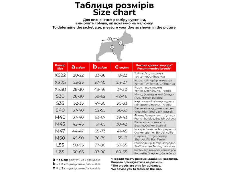 a см/cm | b см/cm | c см/cm | Рекомендуемые породы* Recommended breeds* |