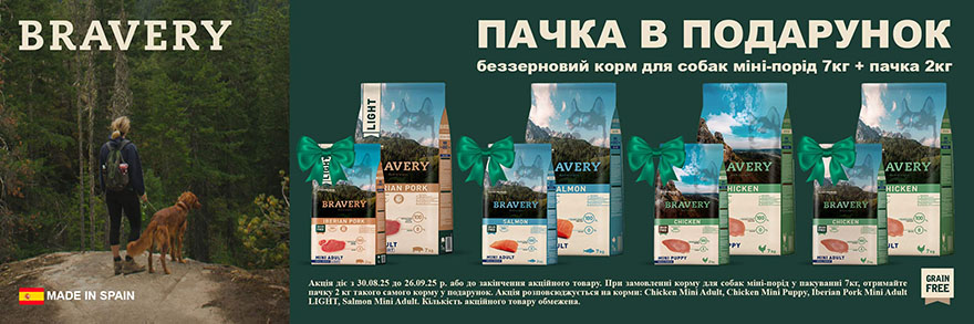 Bravery - испанский бренд супер-премиум класса от компании Alinatur Petfood, производящий беззерновые монобелковые корма для кошек и собак. Продукция изготавливается из натуральных ингредиентов, где мясо или рыба (курица, ягненок, лосось, сельдь) является основным компонентом, без добавления зерновых, глютена, искусственных красителей или консервантов. Корма обогащены антиоксидантами, Омега-3 и Омега-6, пребиотиками и клетчаткой, способствующие здоровью пищеварения, шерсти и иммунитета.