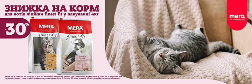 Акция на корм для кошек Mera: скидка до 30%! Воспользуйтесь возможностью приобрести высококачественный корм Mera для кошек со скидкой до 30%. Обеспечьте своему питомцу здоровое и вкусное питание супер-премиум класса по выгодной цене!