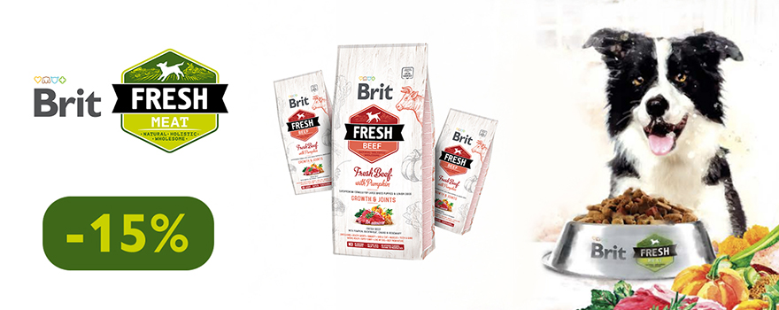 Только сейчас вы можете приобрести качественный и сбалансированный корм Brit Fresh со скидкой 15%. Это прекрасная возможность позаботиться о здоровом питании питомца и сэкономить на ежедневном рационе.