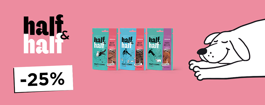 Вы легко подберёте подходящий корм — будь то питание для активных собак, щенков, пожилых питомцев или животных с чувствительным пищеварением. Half&Half предлагает решения на каждый день, объединяя качество и заботу.