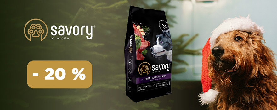 Акция на корм для собак Savory: скидка до 20%! Воспользуйтесь возможностью приобрести высококачественный корм и лакомства Savory для собак со скидкой до 20%. Обеспечьте своему питомцу вкусное и полезное питание премиум-класса по выгодной цене!
