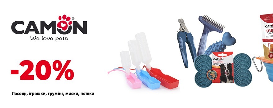 Воспользуйтесь выгодным предложением от Camon — скидка до 20% на лакомства, игрушки, товары для груминга для животных. Это отличный момент, чтобы порадовать своего питомца качественными аксессуарами и полезными продуктами по максимально приятной цене: