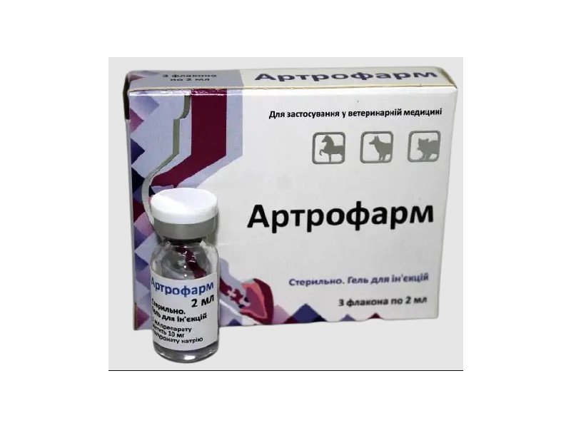 Применение: Лечение лошадей, собак, котов при воспалительно-дегенеративных и травматических поражениях суставов неинфекционной этиологии (артрозы, синовиты, артриты, остеоартриты, полиартрози, тендовагиниты, бурситы), остеохондрозе, дисфункции суставов, обусловленной хромотой, острых и хронических кератитах, конъюнктивитах и кератоконъюнктивитах, а также при язвах и ранах роговицы.