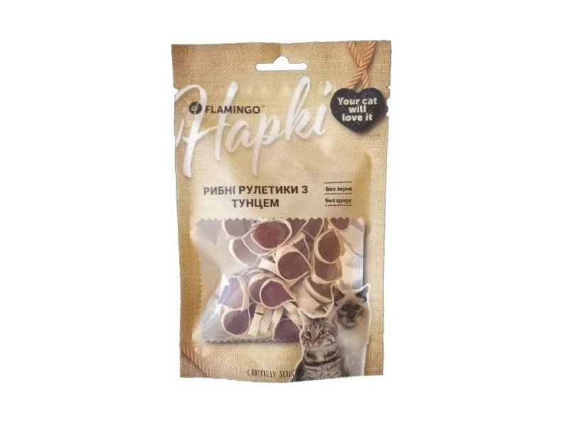 Питательные роллы Flamingo с тунцем – это вкусное и сбалансированное угощение для кошек всех пород от 4 месяцев. Благодаря 77% тунца, дополненного треской, курицей и бататом, снеки обладают нежной текстурой, привлекательным ароматом и высокой питательной ценностью. Без глютена, сахара, красителей и ароматизаторов – идеально для ежедневного поощрения.
