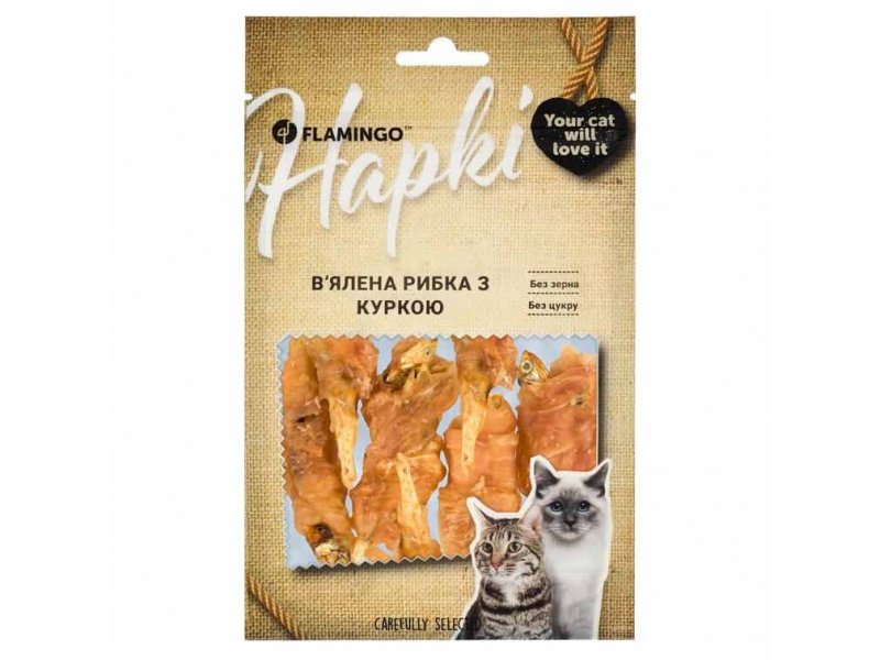 Закуска Flamingo Хапки из вяленой рыбы и курицы – отличный выбор для вашего кота. Лакомство богато белком и имеет низкое содержание жира, не содержит сахара и глютена, подходит для всех пород котов. Отлично подойдет как награда или перекус между основными приёмами пищи.