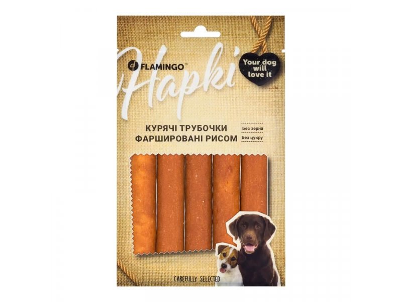 Представьте идеальный перекус для Вашей собаки – вкусные куриные трубочки Flamingo фаршированные рисом, от которых любой любимец просто не сможет оторваться!