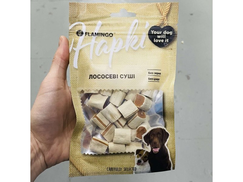 Представьте идеальный перекус для Вашей собаки – мягкие суши с нежным мясом лосося, от которых любой питомец просто не сможет оторваться! Лакомства Flamingo – это 100% натуральные ингредиенты, максимум пользы и удовольствия в каждом кусочке, а все потому, что мы знаем секрет идеального перекуса!