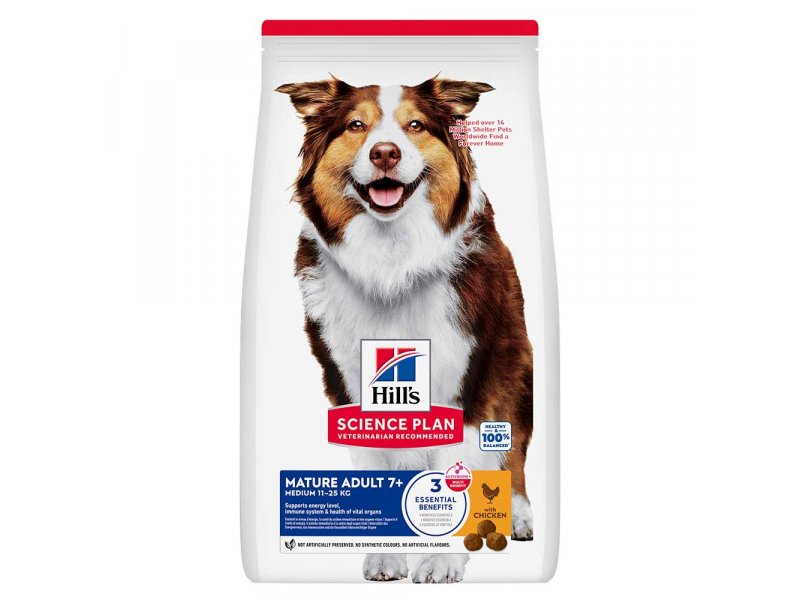 Hill's Science Plan Canine Mature Adult 7+ Active Longevity Medium с Курицей разработан для поддержания подвижности и здоровья внутренних органов.