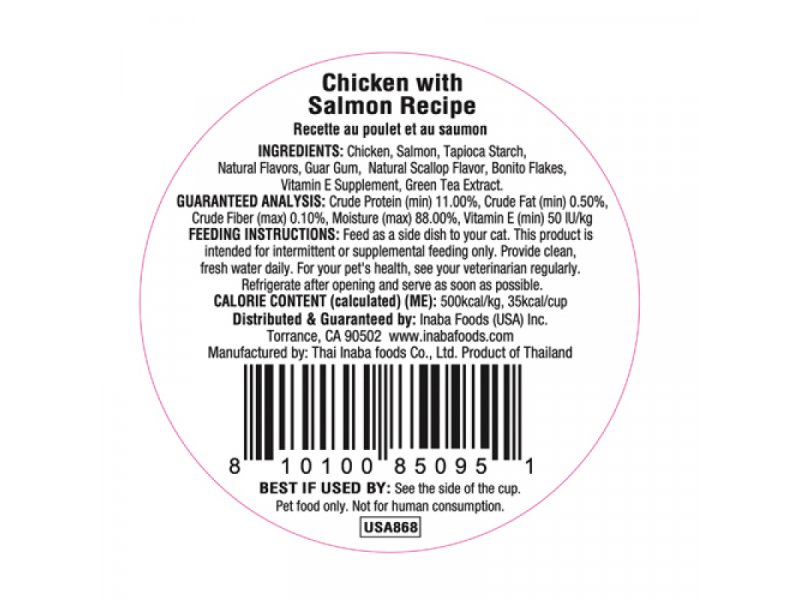 Ингредиенты Inaba Cat Dashi Delights: курица, лосось, тапиоковый крахмал, натуральные ароматизаторы, гуаровая камедь, экстракт гребешка, хлопья бонито, добавка витамина Е, экстракт зеленого чая.