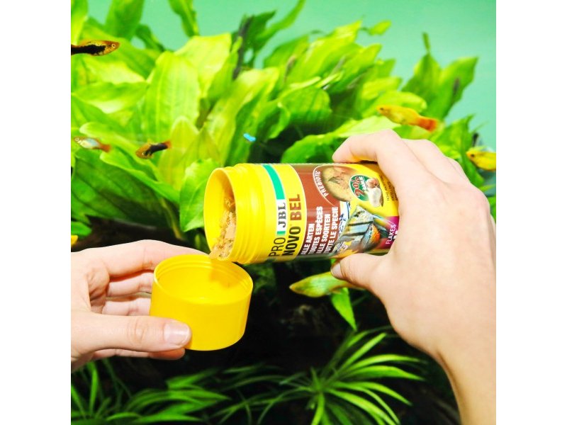 JBL PRONOVO BEL FLAKES M разработан специально для смешанных аквариумов с несколькими видами рыб.Он учитывает различные типы питания (всеядные, частично хищные и растительноядные виды) и подходит какбазовый ежедневный корм.