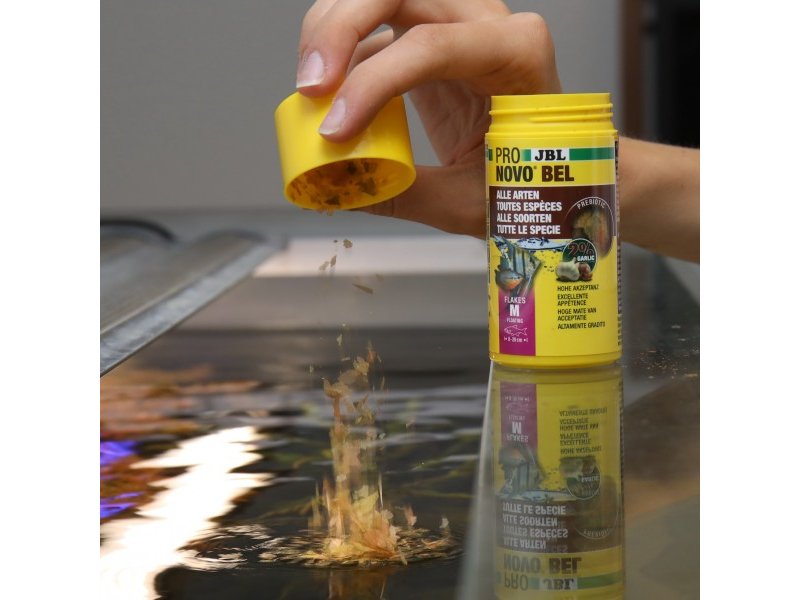 JBL PRONOVO BEL FLAKES M – полноценный основной корм класса премиум в хлопьях для всеядных рыб в пресноводных аквариумах. Благодаря сбалансированному составу извысококачественных животных и растительных ингредиентов, пребиотическим компонентам и добавлениючеснока этот корм поддерживает здоровое пищеварение, яркую окраску и жизненную активность рыб.