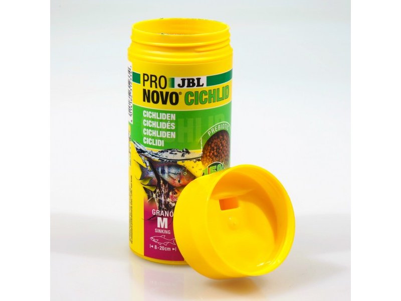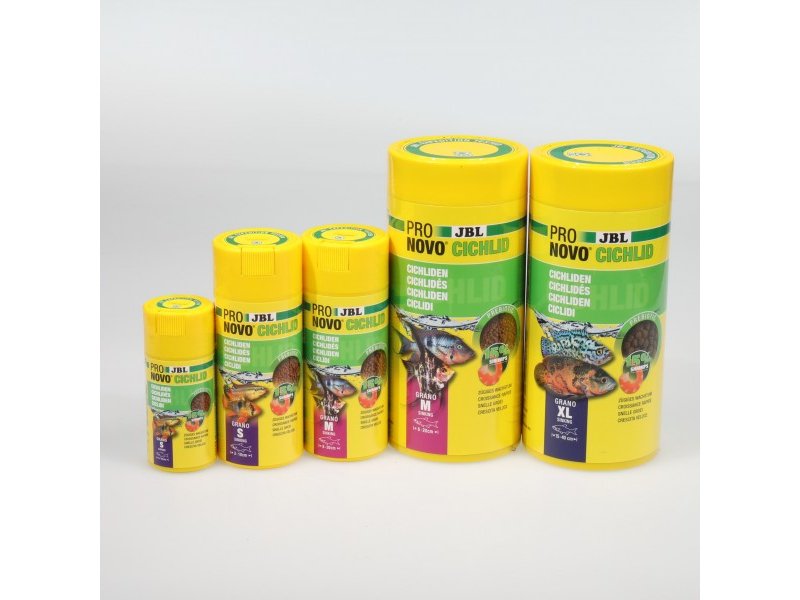 Если в аквариуме одновременно содержатся более мелкие цихлиды (3–10 см) или, наоборот, очень крупные виды (15–25 см), JBL PRONOVO CICHLID GRANO M можно комбинировать с другими размерами линейки: PRONOVO CICHLID GRANO S и PRONOVO CICHLID GRANO XL.