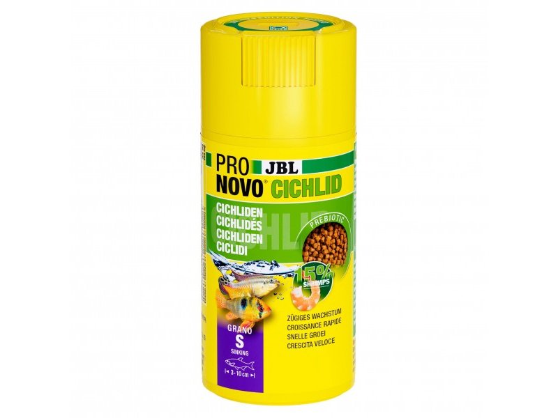JBL PRONOVO CICHLID GRANO S создан как основной ежедневный корм для мелких южноамериканских цихлид и родственных видов, достигающих длины около 3–10 см.