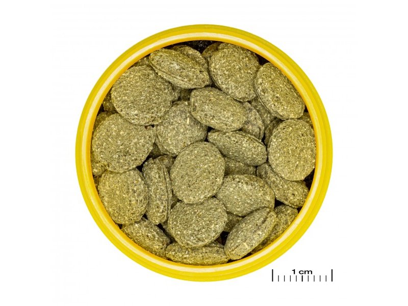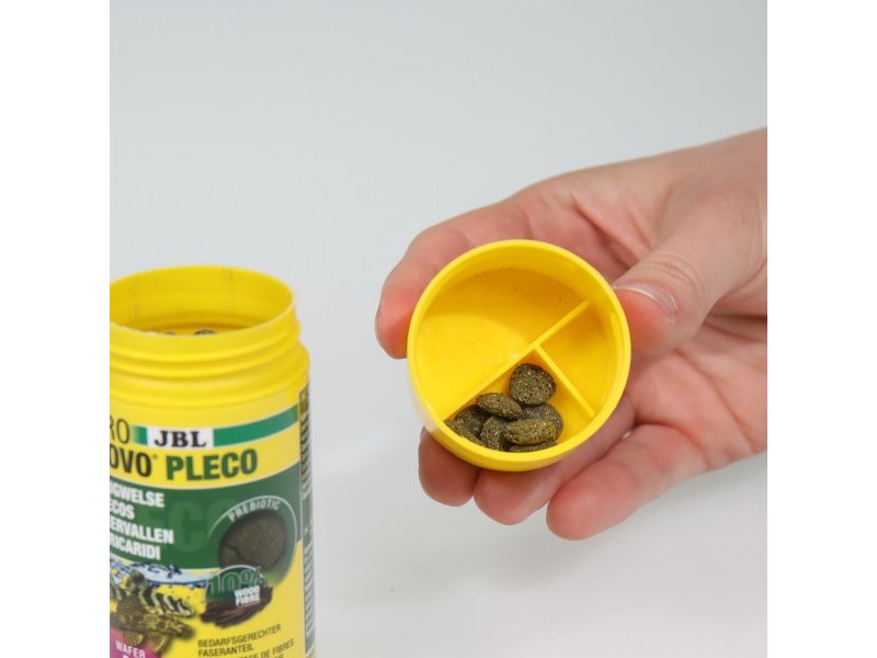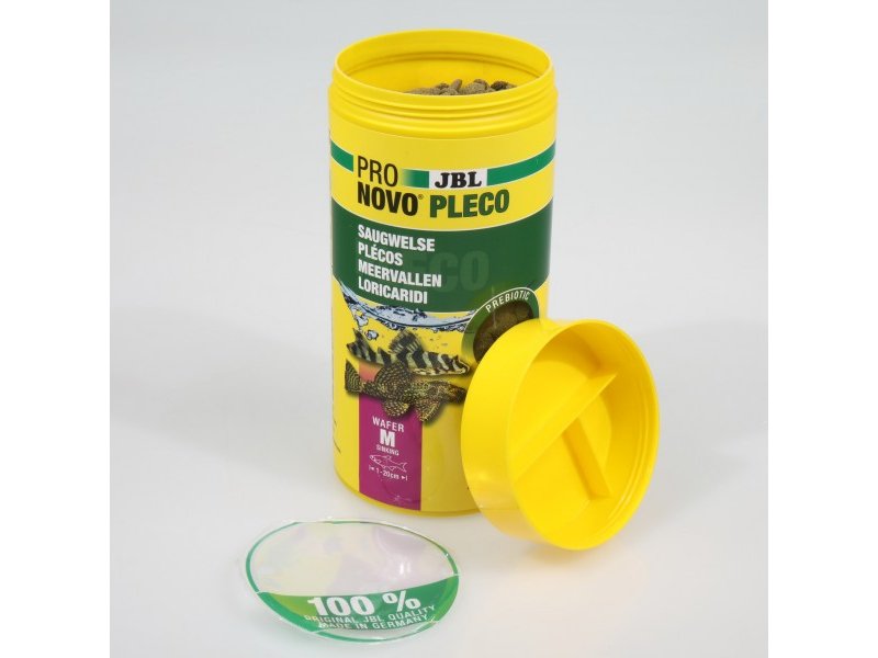 JBL PRONOVO PLECO WAFER M – полноценный основной корм в виде таблетокс содержанием древесины для растительноядных сомов-присосок (Loricaridae) длиной примерно 1–20 см. Корм разработан специально для сомов, которые в природе соскребают обрастания с камней и коряг,поедают водоросли, растительные остатки и древесину, поэтому он содержит высококачественные растительные компоненты идревесное волокно.