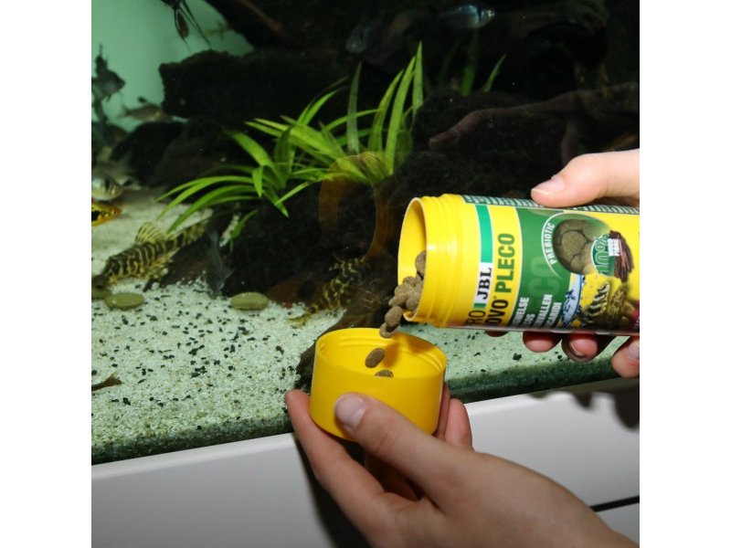 Если у вас в общем аквариуме обитают различные донные виды (растительноядные, всеядные и хищные сомы),JBL рекомендует давать корма для каждой группы одновременно. Рыбы имеют хорошо развитый нюх и обычноотказываются от корма, который им не подходит по типу, поэтому случайное поедание «не своего» корма опасным не является.
