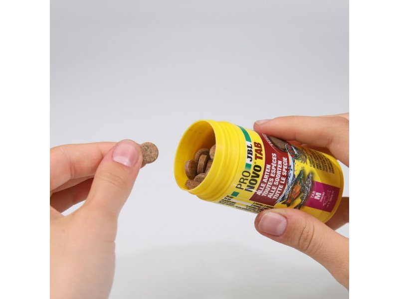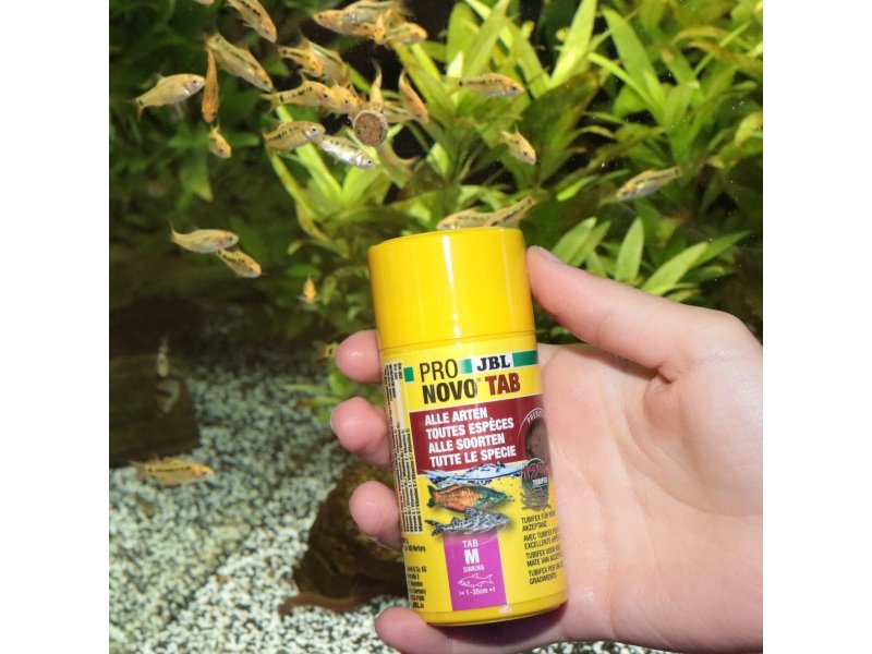 Рекомендуемый диапазон размера рыб – 1–20 см. Благодаря формату таблеток JBL PRONOVO TAB M хорошо работает как основной корм в типичном аквариуме с разными видами рыб.