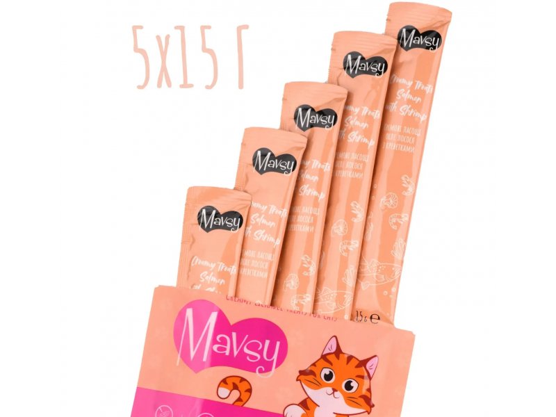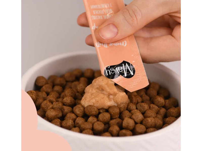 Лакомство Mavsy Creamy Treats имеет бархатную и гладкую текстуру, которую обожают коты. Они специально разработаны так, чтобы их можно было лизать, чтобы ваш котик наслаждался каждым кусочком сливочного вкусности.