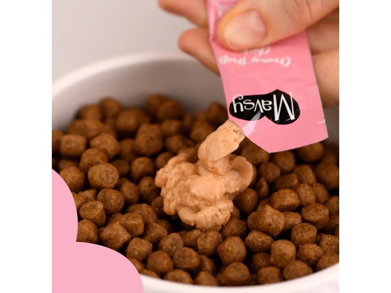 Лакомство Mavsy Creamy Treats имеет гладкую кремовую текстуру, которую обожают коты. Они легко слизываются, что позволяет вашему коту насладиться каждым кусочком лакомства. Это лакомство можно подавать прямо из тюбика, что делает его удобным вариантом для быстрого поощрения или особых моментов сближения с вашим котиком.