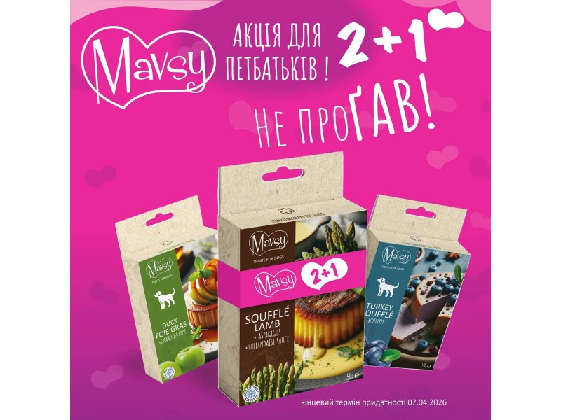 С 8 сентября по 1 декабря 2025 года действует специальное предложение на линейку Mavsy Freeze Dried — премиальные лакомства для собак, созданные по уникальным рецептам из натуральных ингредиентов.