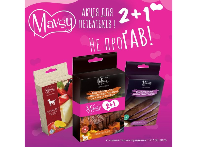 С 8 сентября по 1 декабря 2025 года — порадуйте своего питомца изысканным набором лакомств Мавси. Это не просто перекус, а настоящий суперфуд для собак — создан из натурального мяса, овощей и фруктов, без использования зерновых, консервантов и искусственных ароматизаторов.