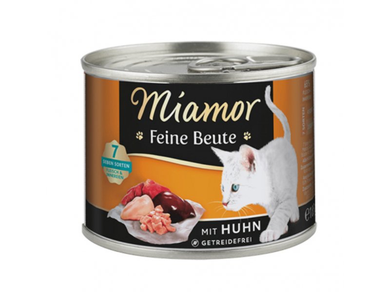 Miamor Feine Beute mit Huhn – это 7 видов мяса и субпродуктов: 7 вкусов для 7 жизней вашего кота! Этот влажный корм создан с учетом природных потребностей котов, ведь в дикой природе они питаются исключительно мясом. Поэтому в составе нет пшеницы, кукурузы, сои и других наполнителей – только ценные мясные ингредиенты, необходимые для энергии, силы и здоровья вашего питомца.