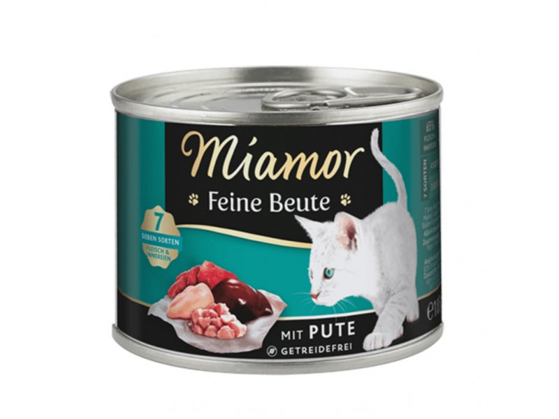 Miamor Feine Beute mit Pute – это 7 видов мяса и субпродуктов: 7 вкусов для 7 жизней вашего кота! Этот влажный корм создан с учетом природных потребностей котов, ведь в дикой природе они питаются исключительно мясом. Поэтому в составе нет пшеницы, кукурузы, сои и других наполнителей – только ценные мясные ингредиенты, необходимые для энергии, силы и здоровья вашего питомца.