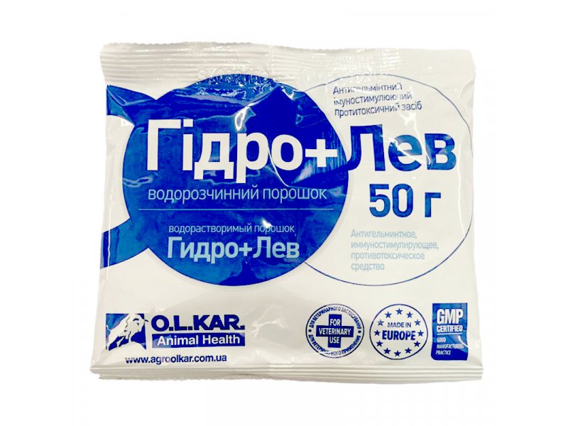 Гидро+Лев – это комбинированный препарат с ярко выраженным антигельминтным, иммуностимулирующим действием и благодаря аскорбиновой кислоте и глюкозе с умеренной токсичностью.