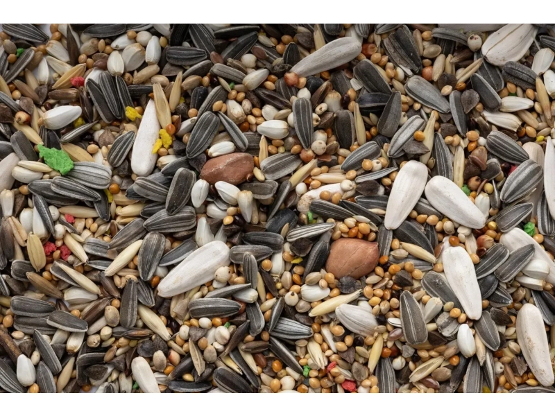 Состав: разнообразные просо, масличные семена, семена подсолнечника, арахис, канареечные семена, злаковые, рис, овес, цветной бисквит.