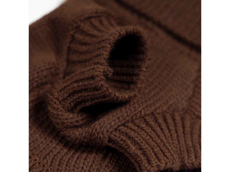 Свитер изготовлен из мягкого акрилового трикотажа, который приятен на ощупь, легкий и прекрасно сохраняет тепло. Благодаря эластичности ткани изделие легко надевается через голову, не требуя застежек. Высокий воротник и аккуратные рукава дополнительно защищают от холода. Материал неприхотлив в уходе, что делает свитер практичным вариантом для ежедневного использования.