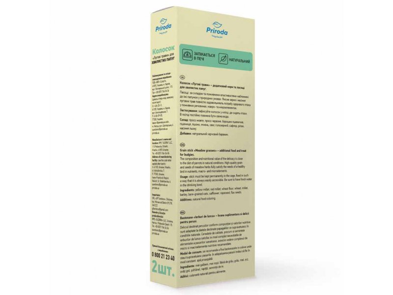 Природа Колосок Луговые Травы - полноценные витаминизированные лакомства имеют высокую питательную ценность и вкусовые качества благодаря специальной технологии обработки ингридиентов. Состав колосков приближен к еде попугаев в естественных условиях. Отборные зёрна обеспечивают птиц энергией.