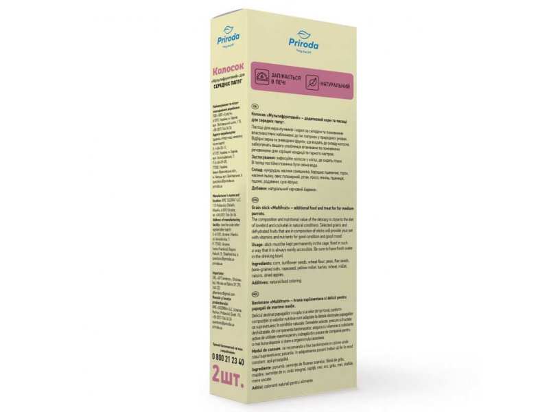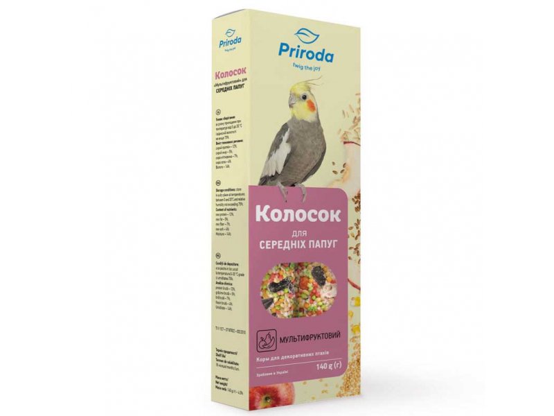 Природа Колосок «Мультифруктовый» – полноценный витаминизированный корм и лакомства для средних попугаев.