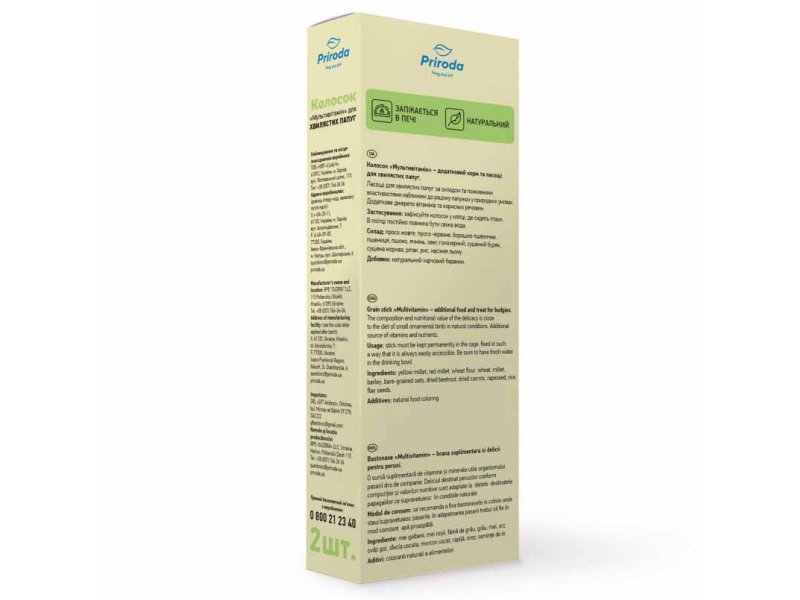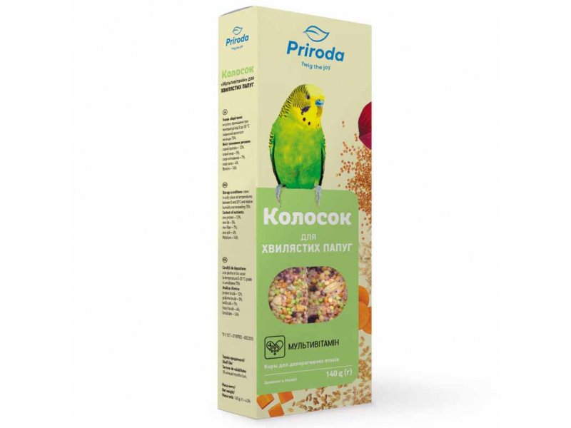 Природа Колосок Мультивитамин - полноценные витаминизированные лакомства имеют высокую питательную ценность и вкусовые качества благодаря специальной технологии обработки ингредиентов. Состав колосков приближен к еде попугаев в естественных условиях.