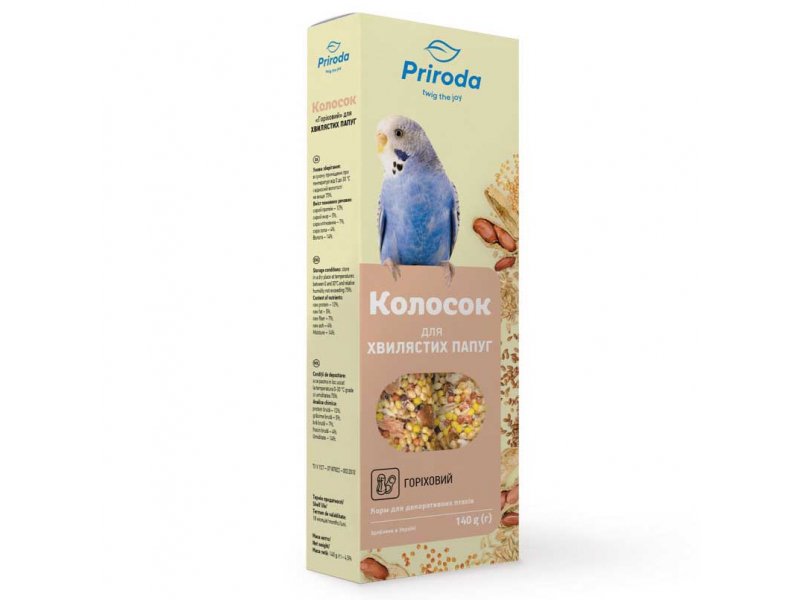 Природа Колосок Ореховый - полноценные витаминизированные лакомства имеют высокую питательную ценность и вкусовые качества благодаря специальной технологии обработки ингредиентов. Состав колосков приближен к еде попугаев в естественных условиях.