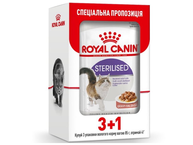 Royal Canin Sterilised - сбалансированный влажный корм для взрослых, кастрированных или стерилизованных кошек от 1 года.