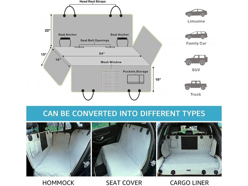 Этот чехол Senful Lassie Dog разработан для комфортной и надежной перевозки вашего питомца, одновременно помогая поддерживать салон автомобиля в чистоте и порядке. Влагостойкая конструкция эффективно защищает сиденья от шерсти, загрязнений, царапин и влаги, а мягкая стеганая поверхность дарит собаке дополнительный комфорт во время поездки. Сетчатое окошко между передними креслами позволяет животному видеть хозяина, снижает уровень стресса и способствует лучшей циркуляции воздуха. Также в набор входят ремни безопасности для фиксации питомца, которые крепятся к ошейнику или шлейке и обеспечивают более безопасное передвижение. Монтаж занимает всего несколько минут: чехол легко фиксируется ремнями к подголовникам, а универсальные размеры подходят для большинства легковых автомобилей, внедорожников и пикапов.
