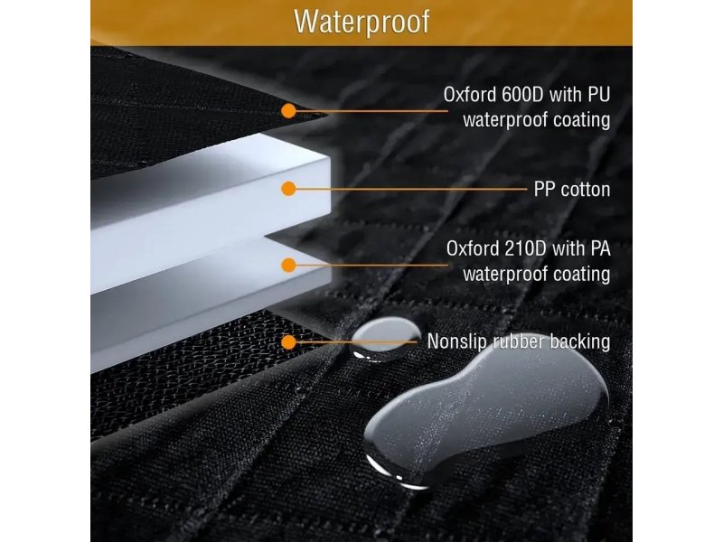 Благодаря универсальному размеру 137 × 147 см этот чехол подходит для большинства легковых автомобилей, внедорожников и кроссоверов. Монтаж занимает всего несколько минут: изделие легко фиксируется за подголовники с помощью прочных ремней и застёжек. Чехол прост в уходе — его можно быстро очистить от загрязнений или протереть влажной тканью.