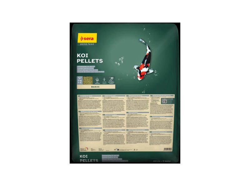 Ингредиенты Sera Koi Pellets: пшеничная мука, кукурузный крахмал, пшеничная клейковина, спирулина (4%), рыбная мука, рыбий жир, пшеничные зародыши, маннанолигосахариды (0,4%), пивные дрожжи, люцерна, крапива, петрушка, мясное блюдо из зеленогубых мидий, мука из морских водорослей, паприка, шпинат, морковь, чеснок, водоросль гематококкус, семена пожитника, семена фенхеля, семена аниса.