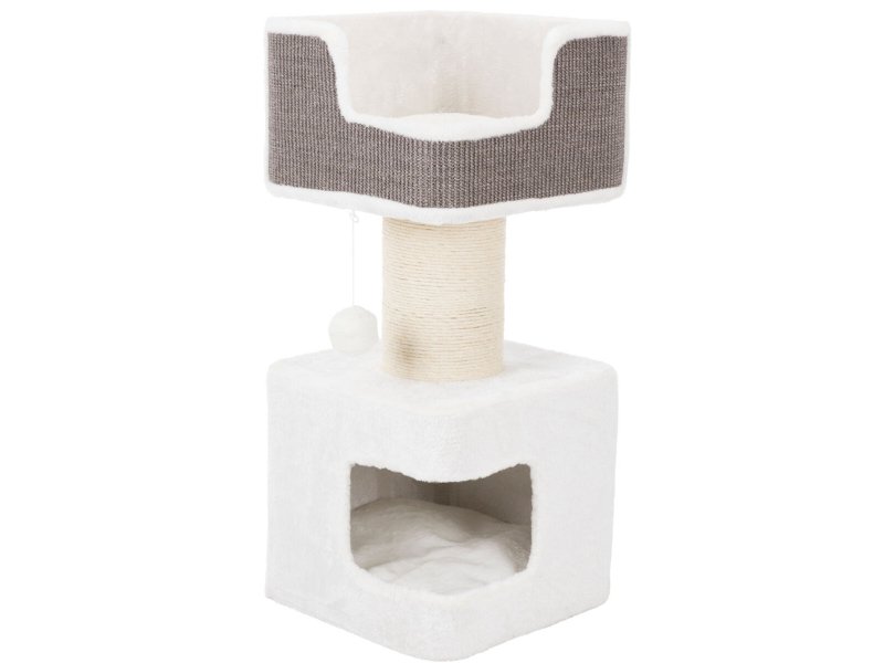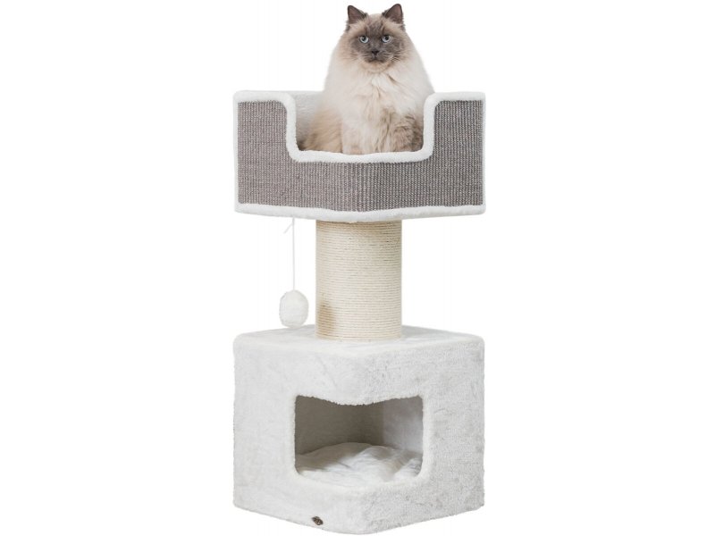 Устойчивый и уютный домик для кошек AVA обшит плюшем, обивка столбиков -когтеточки выполнены из натурального сизаля.
